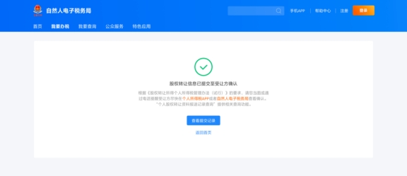 如果受讓方為自然人,需要其在個人所得稅APP或者自然人電子稅務局(WEB端)查看并確認信息;如果受讓方是企業(yè),則需要其在扣繳客戶端或通過自然人電子稅務局網(wǎng)頁端扣繳功能查看并確認信息。
