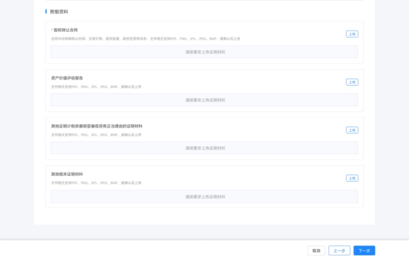 納稅人依次上傳所需資料,完成后進入下一模塊。
