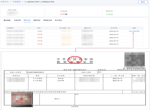 如果有需要,在完成繳稅后,可以點擊“轉開完稅證明”開具稅收完稅證明。
