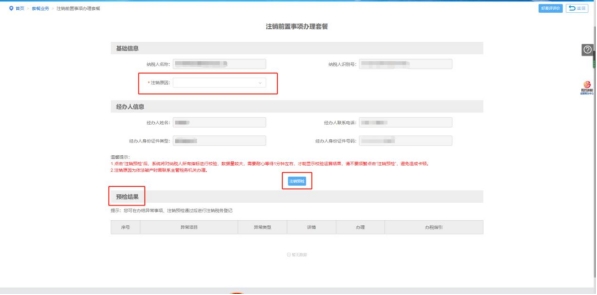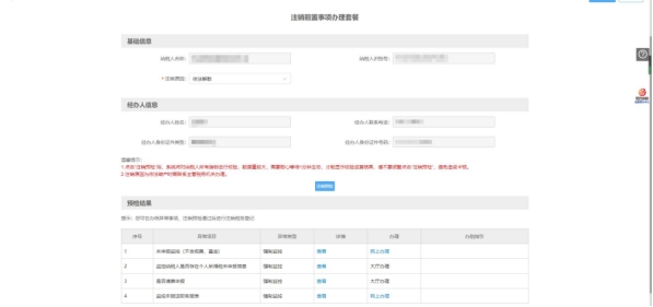 14、處理完畢重新點擊“注銷預檢”,未發(fā)現(xiàn)異常事項后,點擊“申請注銷”。