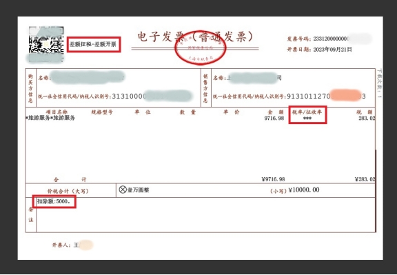 (1)票面左上角(二維碼旁)顯示“差額征稅-差額開(kāi)票”或“差額征稅-全額開(kāi)票”字樣;