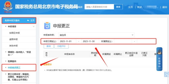 二、稅費(fèi)申報(bào)及繳納—申報(bào)錯(cuò)誤更正,修改申報(bào)月份,點(diǎn)擊更正財(cái)報(bào)即可。