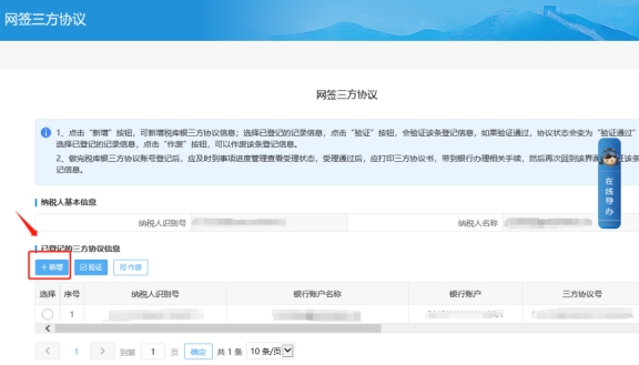三、網(wǎng)簽三方協(xié)議頁面,點(diǎn)擊新增按鈕。