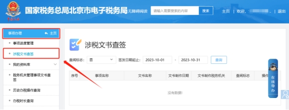 二、事項(xiàng)辦理—涉稅文書查簽,選擇對應(yīng)的事項(xiàng)名稱,下載打印之后去所選銀行辦理簽約業(yè)務(wù)。