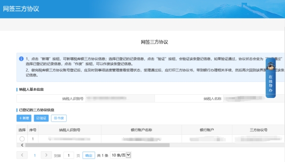答:您好,可通過電子稅務(wù)局首頁【我要辦稅】—【綜合信息報(bào)告】—【制度信息報(bào)告】—【網(wǎng)簽三方協(xié)議】點(diǎn)擊新增按鈕,在彈出的網(wǎng)頁中選擇銀行賬戶信息點(diǎn)擊確認(rèn),進(jìn)入填表頁面,選擇對應(yīng)的清算銀行號,會(huì)自動(dòng)帶出開戶銀行行號,確認(rèn)信息無誤后可以點(diǎn)擊保存填表信息;點(diǎn)擊下一步提交表單,受理完成后可以在事項(xiàng)進(jìn)度管理查看受理系統(tǒng)回執(zhí)單。納稅人辦理完成之后,若所選銀行為直簽銀行,可以在網(wǎng)簽三方協(xié)議頁面,選擇對應(yīng)的信息,直接點(diǎn)擊驗(yàn)證;若納稅人所選銀行不是直簽銀行,納稅人需要在【我要查詢】—【辦稅進(jìn)度及結(jié)果信息查詢】—【涉稅文書查簽】選擇對應(yīng)的事項(xiàng)名稱,下載打印之后去所選銀行辦理簽約業(yè)務(wù),辦理完成之后,再登錄電子稅務(wù)局【我要辦稅】—【綜合信息報(bào)告】—【制度信息報(bào)告】—【網(wǎng)簽三方協(xié)議】選擇要驗(yàn)證的信息點(diǎn)擊驗(yàn)證,顯示驗(yàn)證通過即可。