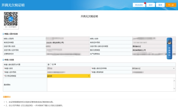 三、開具無欠稅證明頁面進(jìn)行開具。