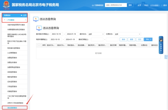 二、我要查詢—一戶式查詢—違法違章查詢模塊帶出違法信息。