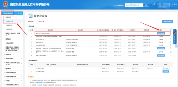 二、稅費申報及繳納—申報清冊—按期應(yīng)申報—財產(chǎn)和行為稅合并申報。