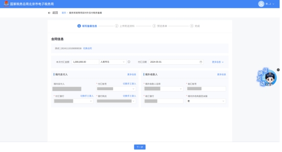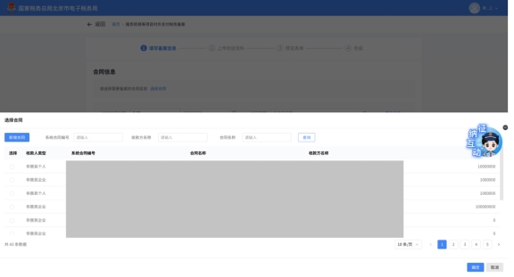 (2)選擇需要進行對外支付稅務(wù)備案的合同;無合同的情況下可以點擊“新增合同”按鈕,進行合同新增;