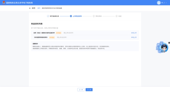 (3)選擇合同后,點擊“確定”進入備案信息填寫,信息填寫完整后,點擊“下一步”;