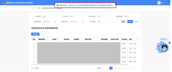 答:1. 登錄新電子稅局后,點擊【我要辦稅】-【證明開具】-【服務(wù)貿(mào)易等項目對外支付稅務(wù)備案】功能菜單。