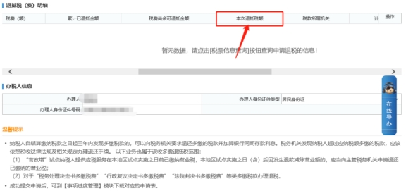 答:您好,請您在退稅頁面,往右側(cè)拖動“退抵稅(費(fèi))明細(xì)”下方的滾動條,后方會顯示標(biāo)黃的“本次退抵稅額”,填寫此項(xiàng)信息后再點(diǎn)下一步提交即可。
