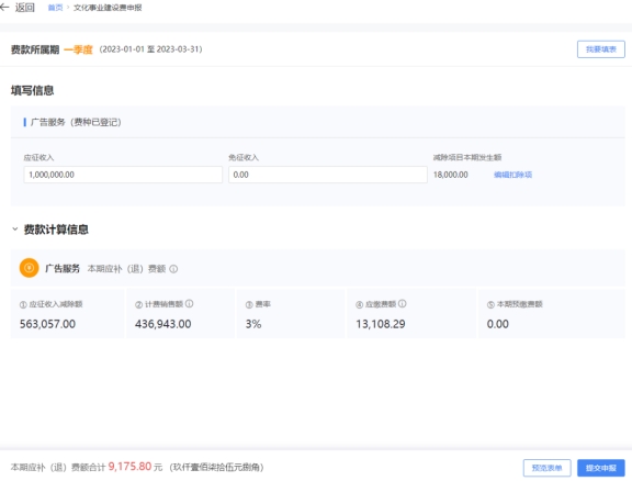 2)繳費人可對《文化事業(yè)建設(shè)費申報表(廣告業(yè))》及《應(yīng)稅服務(wù)減除項目清單(廣告業(yè))》進(jìn)行依次填寫和修改;