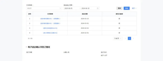 登錄新電子稅局后,您可點擊【我要查詢】-【稅務(wù)文書電子送達查詢】-【稅務(wù)文書送達確認】,選擇文書種類、送達起止日期、是否已查閱等條件,點擊【查詢】查詢已送達的文書。