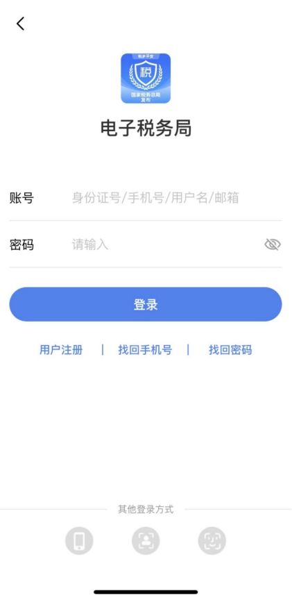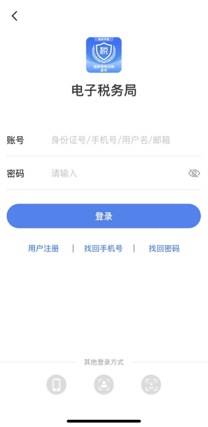 對于已有電子稅務(wù)局或稅務(wù)APP賬號的用戶,直接進行用戶登錄。登錄方式可選擇賬密登錄、短信登錄、掃臉登錄、指紋/面容登錄。