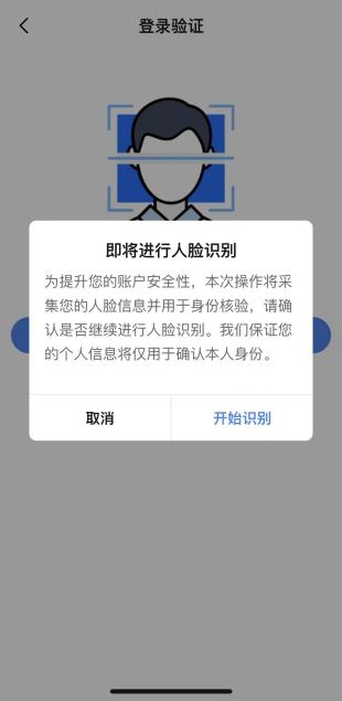 其他登錄方式中點擊掃臉登錄,切換進入掃臉登錄頁面。在登錄框中輸入證件號碼(或手機號碼、用戶名、郵箱),點擊下一步,進入掃臉認證頁面。根據(jù)頁面提示或語音提示作出相應(yīng)動作,完成人臉信息采集后,完成用戶登錄。