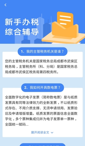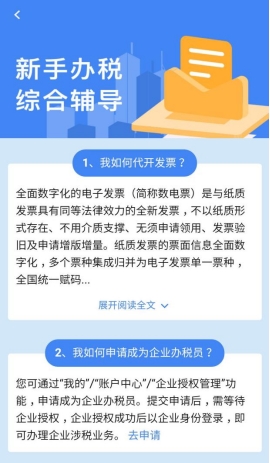 2.3、登錄為企業(yè),且該企業(yè)不是涉稅專業(yè)服務機構,展示:我的主管稅務機關是誰、我如何開具數電票、我如何開具紙質發(fā)票、我如何辦理申報等輔導信息。