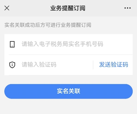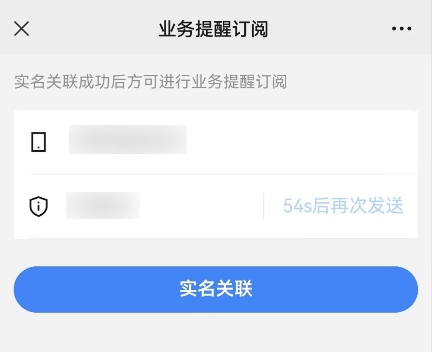 4.用戶輸入手機(jī)號、獲取并輸入驗證碼后點(diǎn)擊“實(shí)名關(guān)聯(lián)”,若關(guān)聯(lián)成功,跳轉(zhuǎn)回“業(yè)務(wù)提醒訂閱”界面。