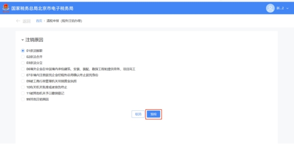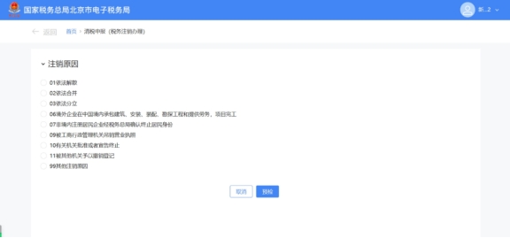 跳轉至清稅申報(稅務注銷辦理)界面,展示注銷原因。