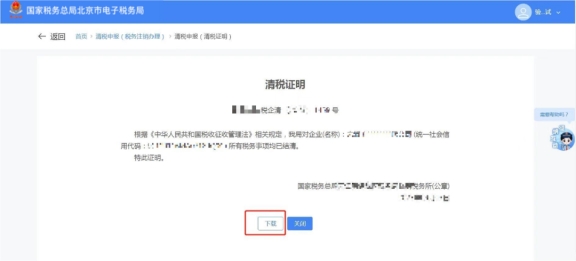 3)系統(tǒng)跳轉至清稅證明界面,點擊【下載】進行清稅證明下載。