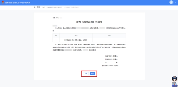 d.點擊【下載】 下載“即辦《清稅證明》承諾書”,點擊【確定】。