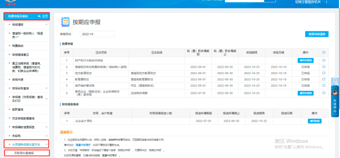 二、稅費(fèi)申報(bào)及繳納—水資源稅信息共享平臺(tái)—月取用水量填報(bào)。
