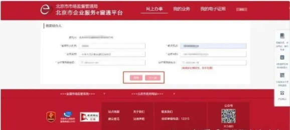 步驟三:輸入指定經(jīng)辦人的信息,帶星號(hào)的項(xiàng)為必填項(xiàng),完成后點(diǎn)擊“保存”并選擇“下一步”。